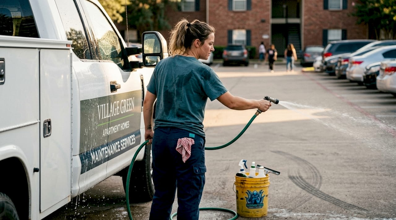 Each of these vehicles is a mobile billboard for your community. When they look dirty, neglected, or worn, residents notice. Visitors notice. Even applicants touring the property notice. A dirty maintenance truck parked near the leasing office sends a subtle but damaging message about management standards.