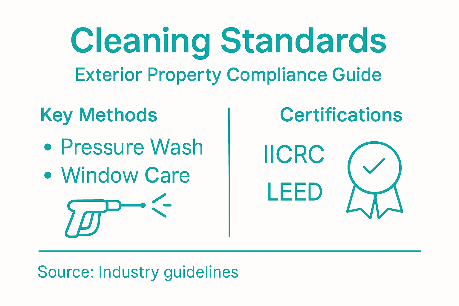 Think of standards as a shared language. When you hire a cleaning partner, both parties understand what "pressure washing to IICRC standards" actually means. You're not arguing over vague terms like "clean" or "fresh-looking." You're referencing specific pressure levels (typically 1500-3000 PSI depending on surface material), acceptable dwell times, and pre-treatment protocols that protect surfaces while removing years of accumulation.